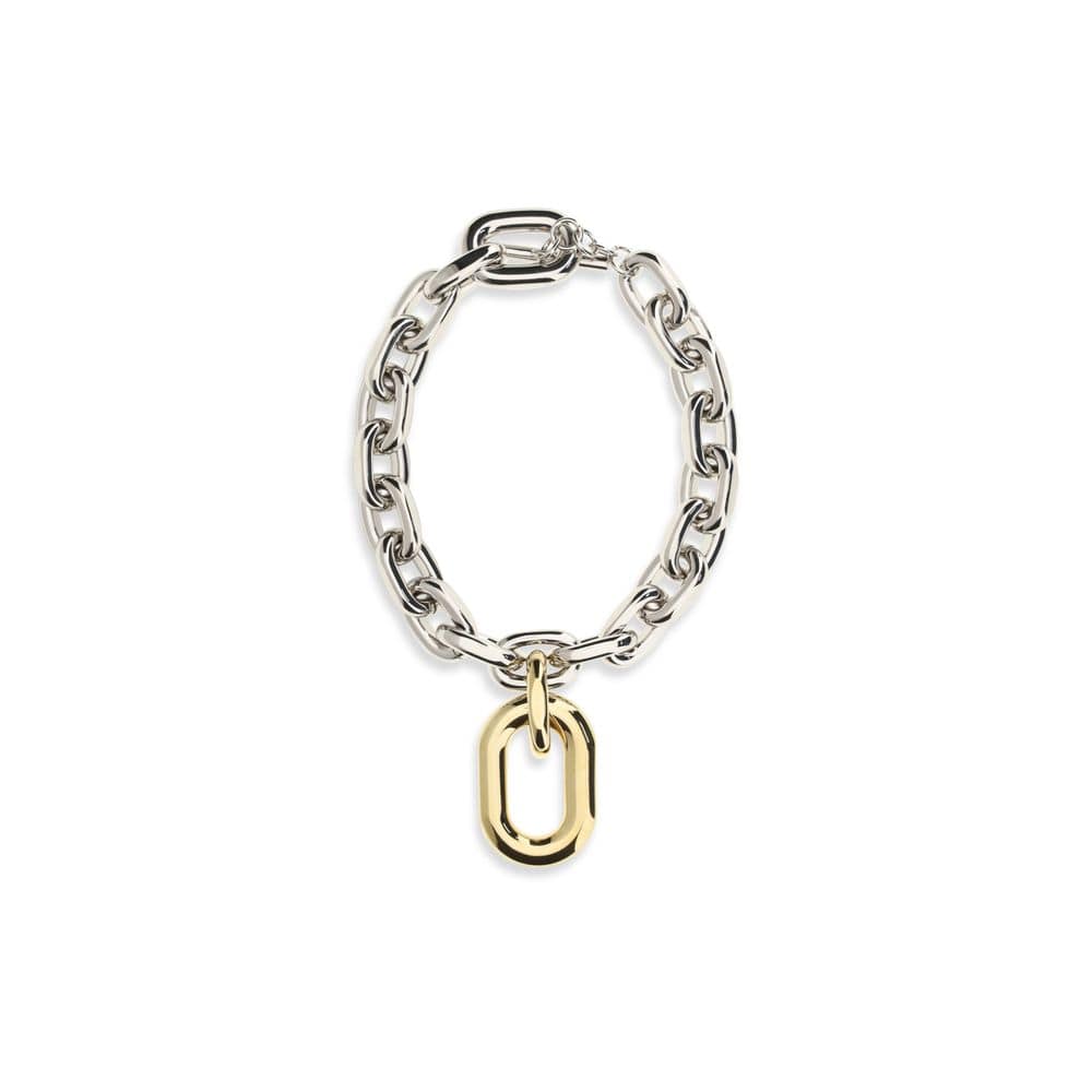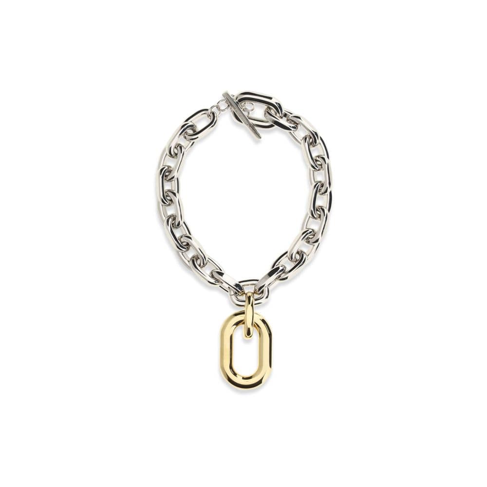 The XL Necklace by Paco Rabanne is a bold and modern accessory, featuring a two-tone gold and silver design. The large interlocking links create a graphic and distinctive effect, while the T-bar clasp ensures security and ease of use. An iconic piece that combines contemporary style and statement jewelry.