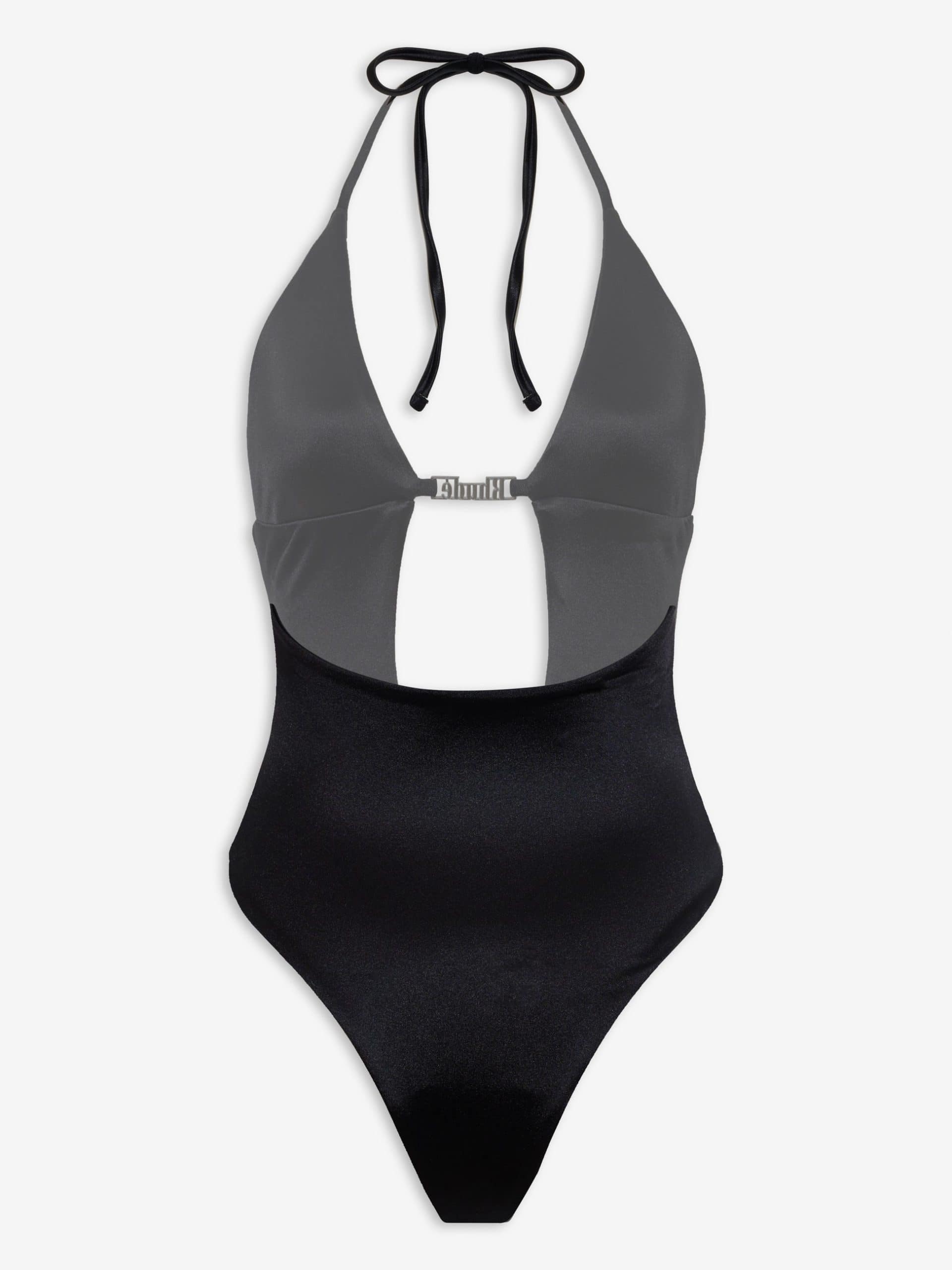 Dive into high-fashion waters with the RHUDE Rimini one-piece swimwear. This sleek metallic black suit exudes a bold edge, perfect for the trendsetter who owns every scene. Crafted with impeccable Italian precision, its 100% polyester composition guarantees a luxurious feel and enduring quality. Make a statement this summer with a piece that’s as daring as it is refined.