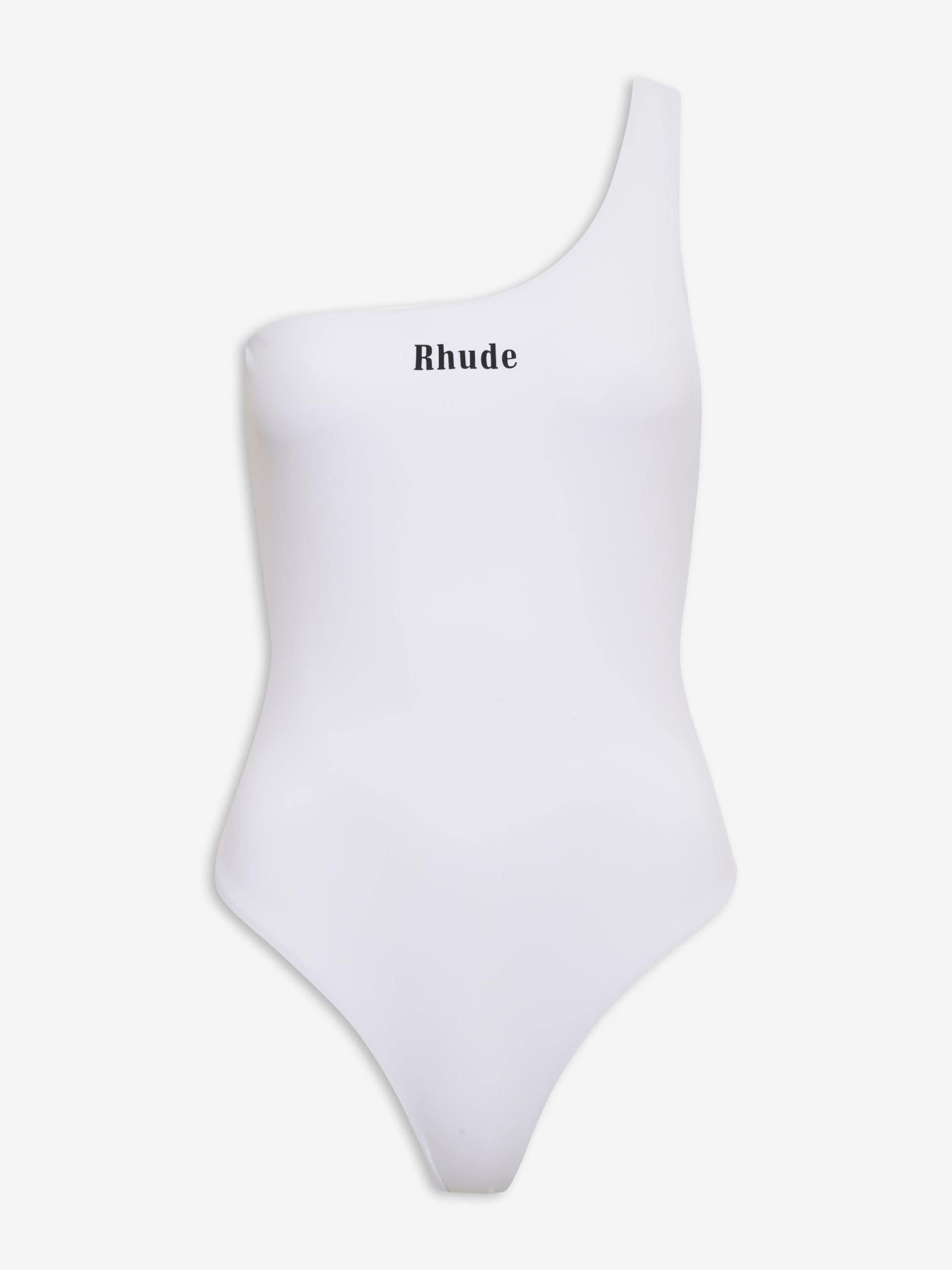 Dive into the epitome of poolside chic with the RHUDE Women’s One-Piece Swim Suit. Exclusively crafted in Italy for the fashion-forward, this sleek white swimsuit is the quintessential summer statement piece for the discerning woman. This pristine ensemble exudes minimalist elegance and is tailored from premium polyester for a luxurious feel against your skin. Perfect for those seeking a blend of contemporary design and timeless style, RHUDE guarantees to make a splash wherever you go.