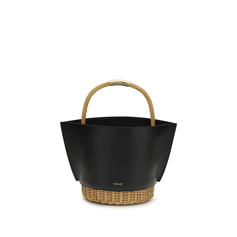 The leather and rattan Handbag by Sacai is the perfect combination of elegance and functionality. The raffia and leather basket design with a round base evokes a natural and sophisticated charm. The fixed handle with gold metal logo adds a touch of luxury, while the removable shoulder strap, thanks to the internal hooks, offers versatility. With a large open main compartment and a removable leather pouch as an accessory, this bag is ideal for those looking for practical style without sacrificing sophistication.