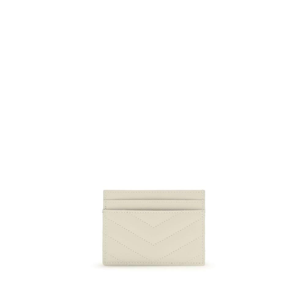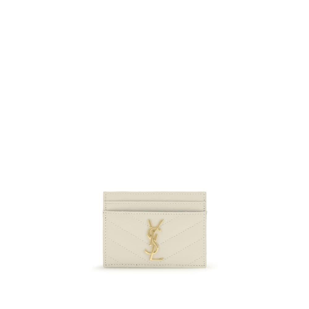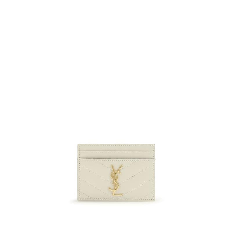 The matelassé leather Cardholder by Saint Laurent features a quilted design and is distinguished by a front plaque with the iconic three-dimensional YSL logo. It includes card slots on the front and back and a top compartment for banknotes, combining elegance and functionality in a refined accessory.