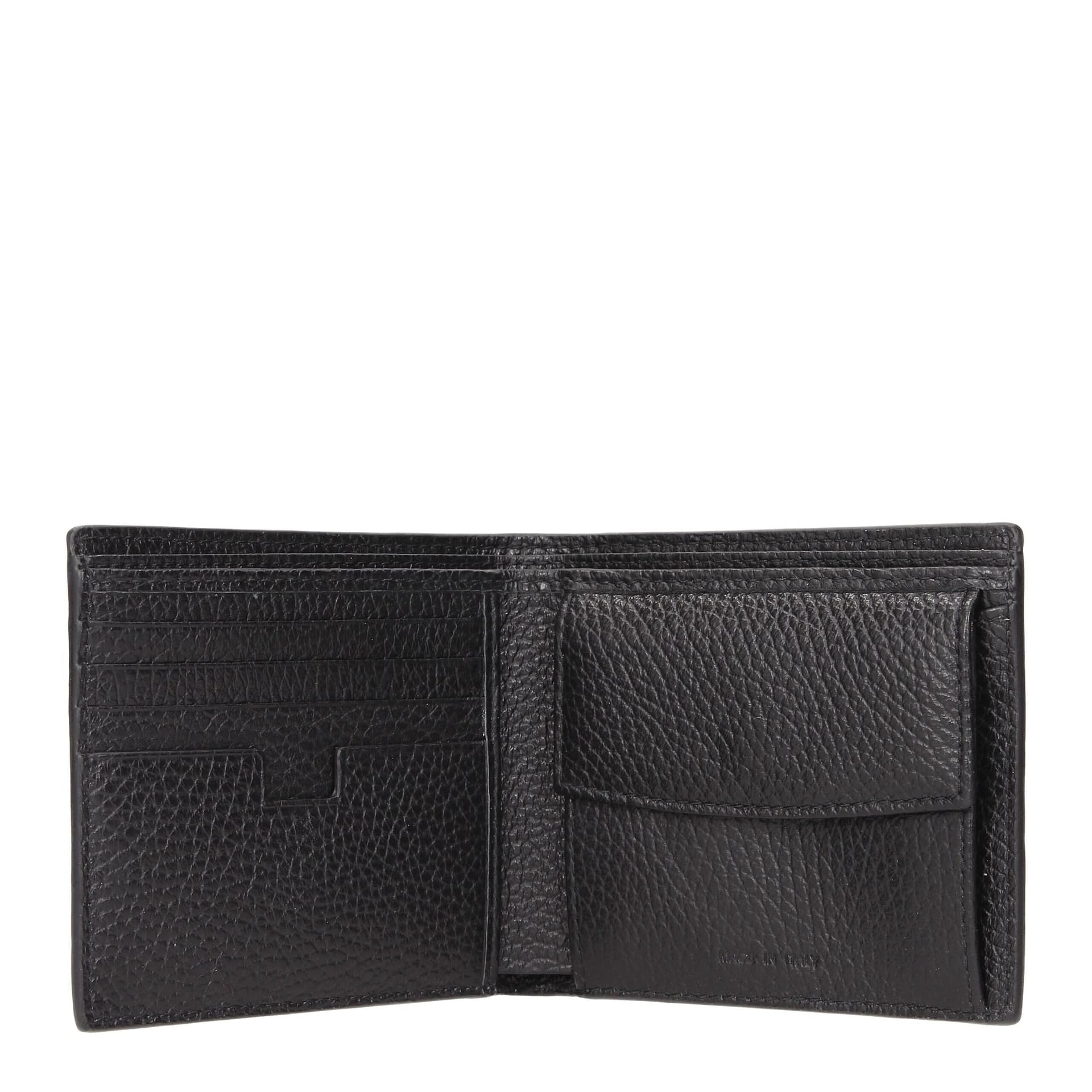 The product with MPN WUO00498035P18 and code F69459 leather in black is a wallets designed by Testoni. It has features like front logo.
