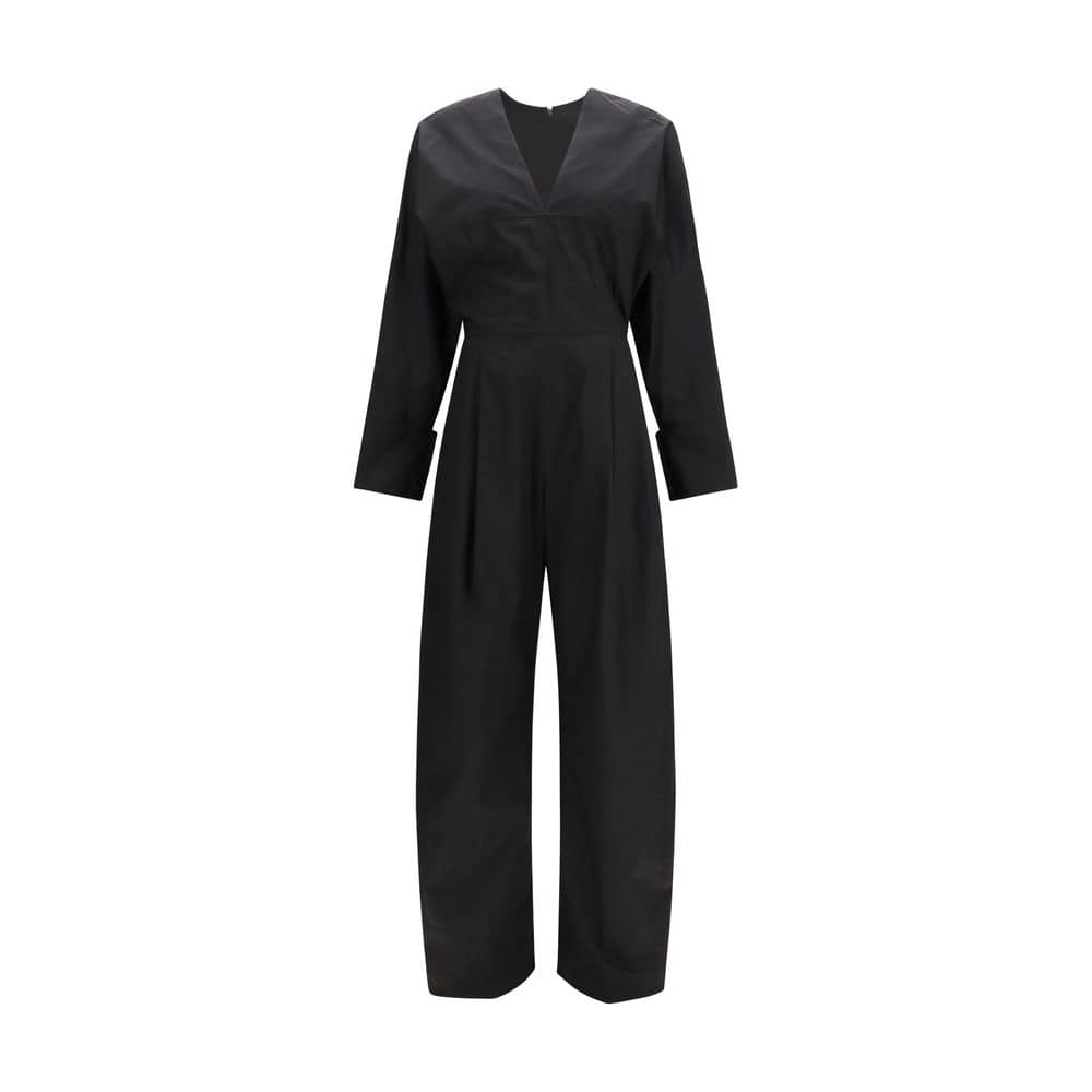 The Drew Jumpsuit by The Latest delivers a fluid and contemporary silhouette with a confident attitude. Crafted in poplin, it features wide-leg trousers that enhance movement and ease. A deep V neckline defines the front with a clean, expressive line, while a zip closure at the back preserves a refined structure. Long sleeves with buttoned cuffs and welt side pockets, paired with two rear pockets, complete a piece designed for modern, effortless elegance.