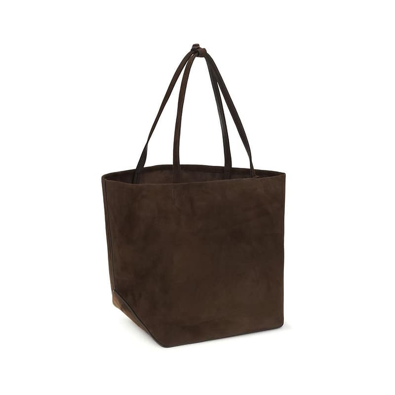 The Park Three Tote Bag by The Row is a contemporary reinterpretation of a timeless classic, crafted from soft, matte suede with an exceptionally soft feel and a slightly distressed finish. Featuring clean lines and updated geometric details at the base, it boasts flat handles, an interior closure, and a practical strap with an adjustable shoulder strap. Minimalist and elegant, it is perfect for everyday use with understated style.