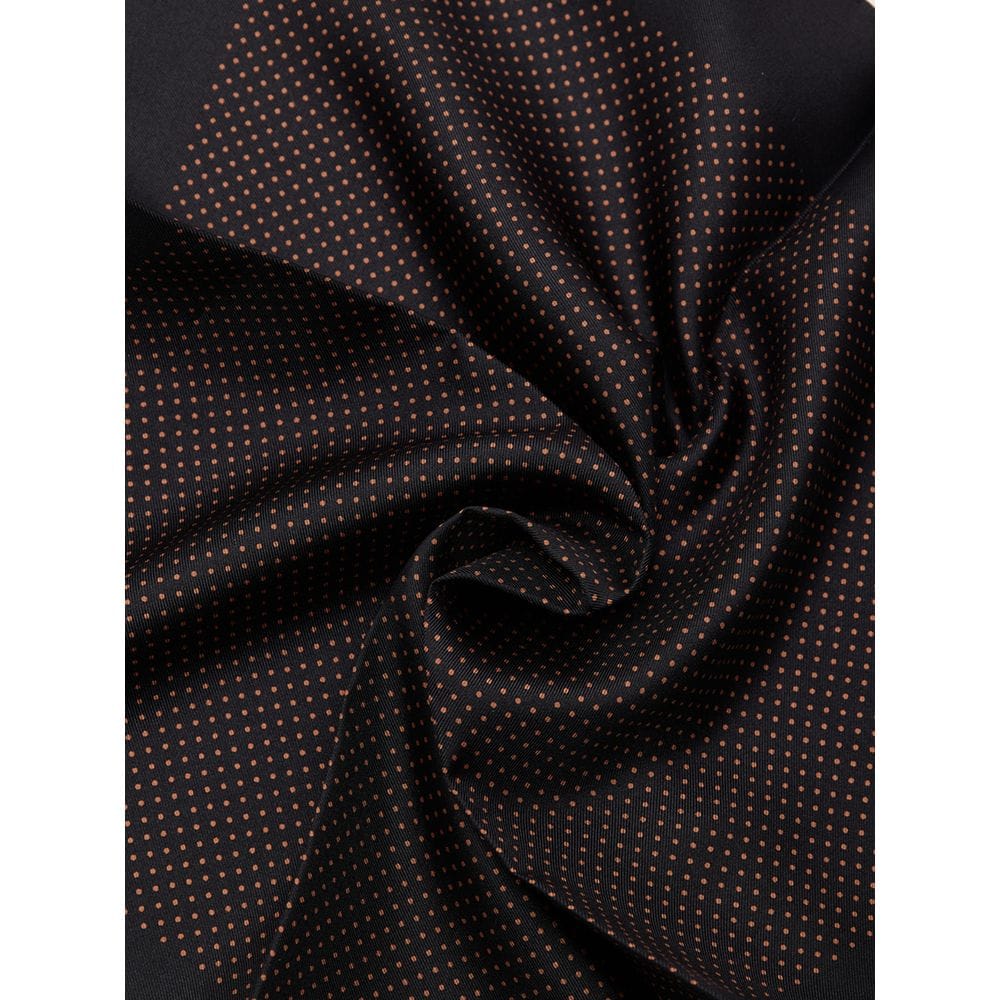 In black silk with a small red polka dot print.