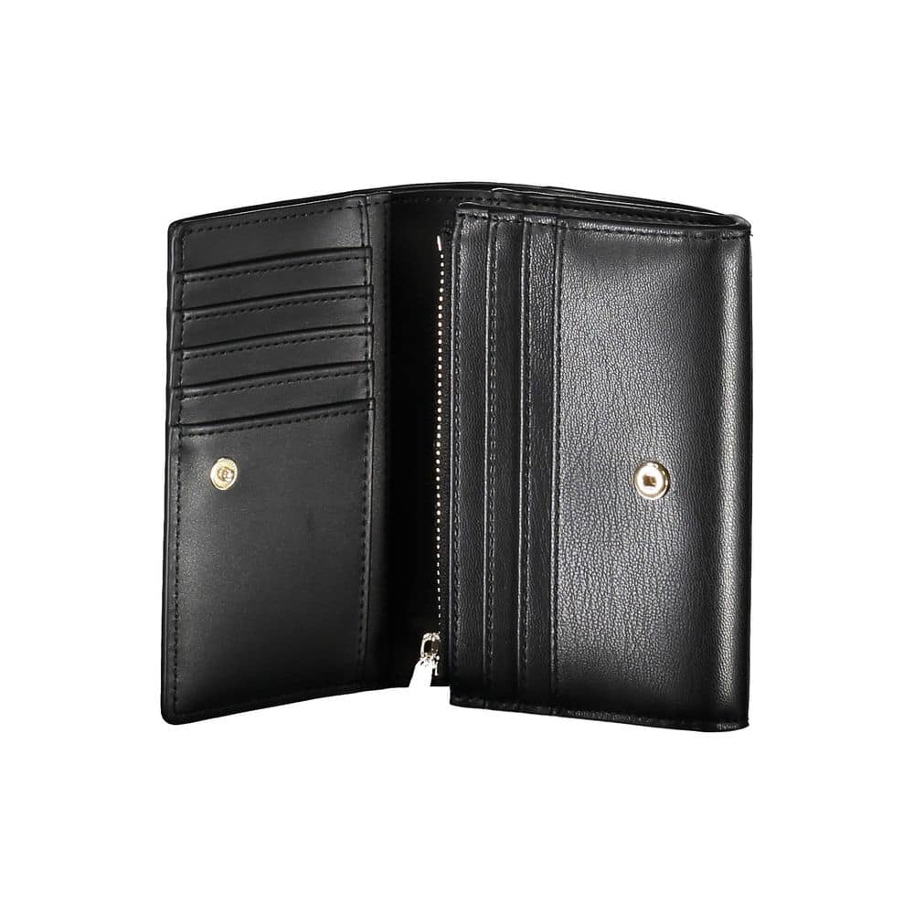 Elevate your essentials with CALVIN KLEIN’s sleek wallet, designed for the modern trendsetter. This black leather piece isn’t just a statement of style but a fortress for your valuables with RFID blocking technology. With two main compartments, a coin purse, and ample space for cards, accented with contrast details and the iconic CALVIN KLEIN logo, it’s the perfect fusion of functionality and high fashion.