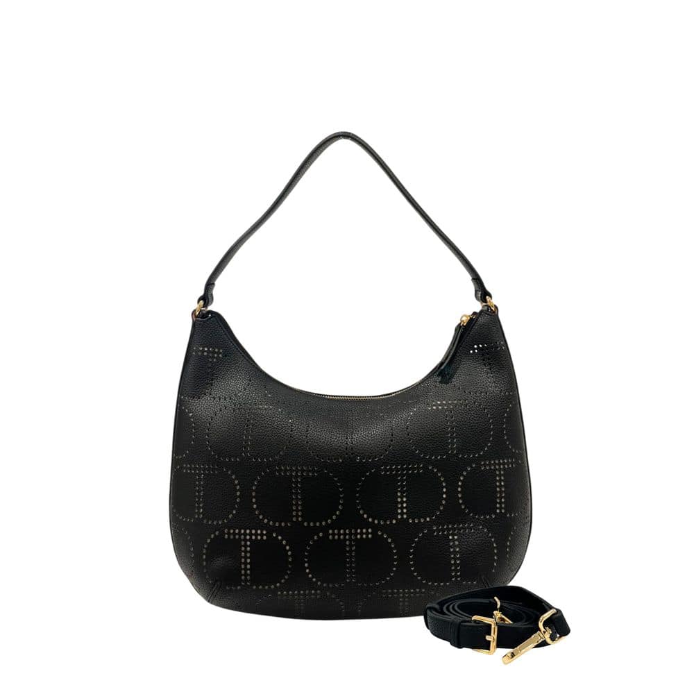 Unleash the epitome of high-end fashion with Twinset’s must-have shoulder bag. Boasting a sophisticated black hue, this accessory is crafted to turn heads with its intricate micro-perforated logo design. The golden metallic accents shimmer with every move, while the practical adjustable strap and secure zip closure promise comfort and safety for your essentials. Dimensions ideal for the modern go-getter: 30x30x6 cm. Dare to stand out? Make Twinset your companion.