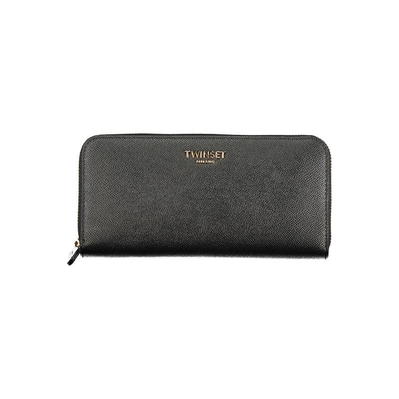 Indulge in the epitome of sleek sophistication with TWINSET’s elegantly designed wallet. Exude confidence as you flaunt this Nero-hued essential, perfect for the modern fashionista. Its functional 5-compartment interior, coupled with a secure coin purse and abundant double card slots, promises both style and practicality. The zip closure keeps your valuables safely encased while the logo signifies your taste for high-end fashion. Make a bold statement with this trendy piece that’s more than just a wallet; it’s a symbol of chic organization.
