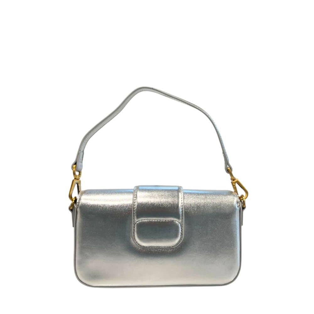 Elevate your style quotient with Twinset’s dazzling silver mini shoulder and crossbody bag—a true testament to chic versatility! Boasting an opulent chain and a sleek flap closure secured by a magnetic button, this petite marvel is adorned with captivating gold metal details and the unmistakable Twinset logo front and center. Compact yet striking, this bag measures 20x12x5 cm, perfect for a night out or adding a touch of glam to any daytime ensemble. Step out in bold fashion with this Twinset masterpiece!