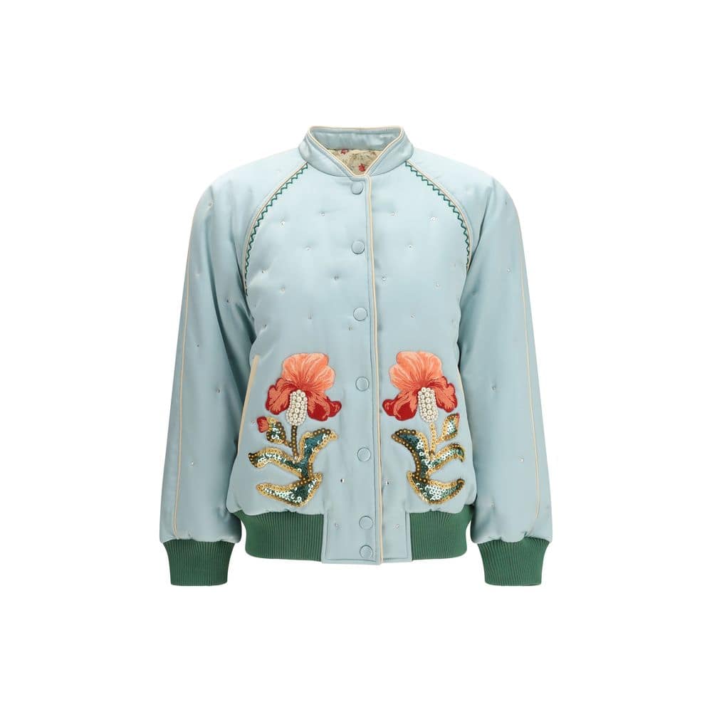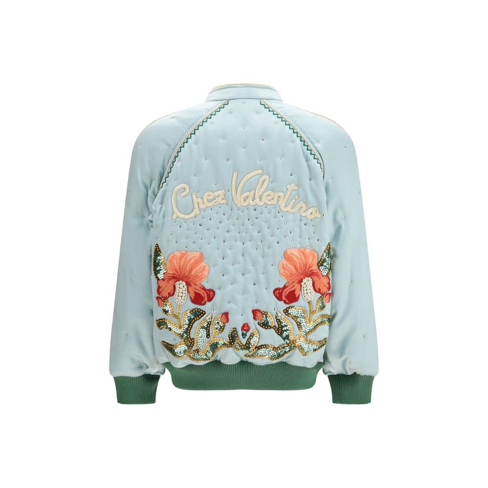 The crepe satin Jacket by Valentino stands out for its refined sequin-embroidered designs, adding luminosity and a striking elegance to the piece. Crafted from fluid and luxurious fabric, it features a snap-button closure for a clean and functional finish. The style is completed with two welt pockets that provide a subtle and sophisticated tailored touch.