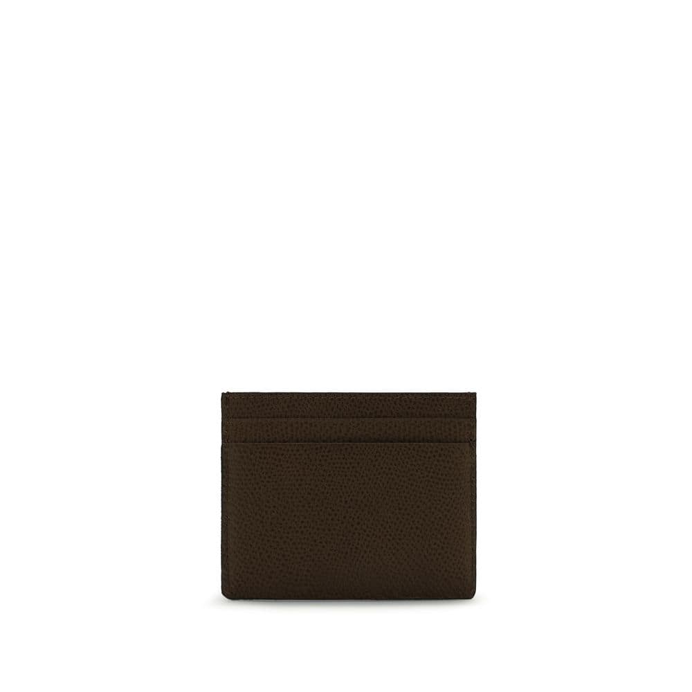 The Vlogo Signature Denim Card Holder by Valentino Garavani is a compact and refined accessory, embellished with elegant floral embroidery and leather trim. Featuring a logo with an antique brass finish, it offers four card slots and a practical central pocket, combining functionality and distinctive style for a touch of luxury in everyday life.