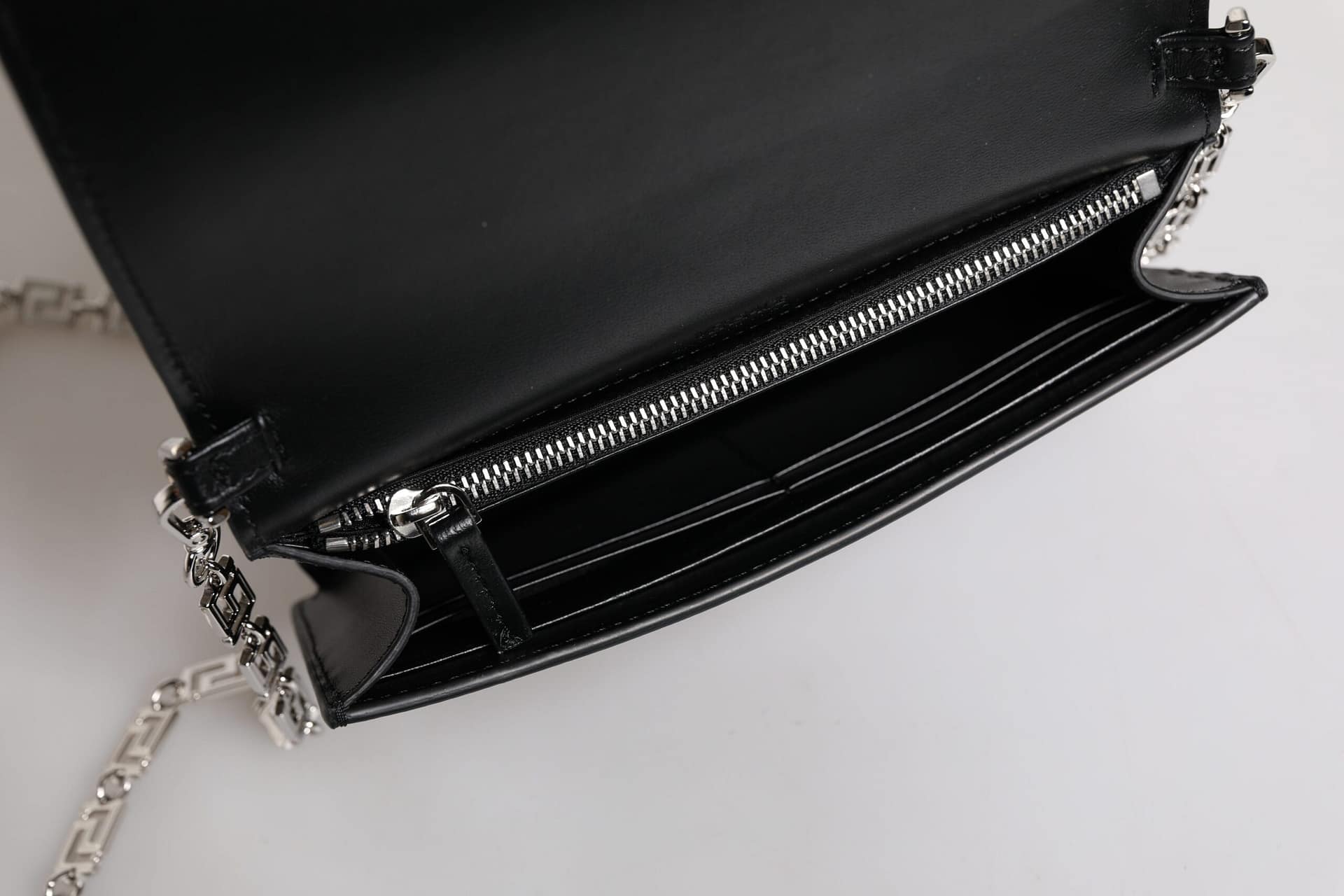 Versace Black Calfskin Leather Chain Strap Shoulder Crossbody Bag