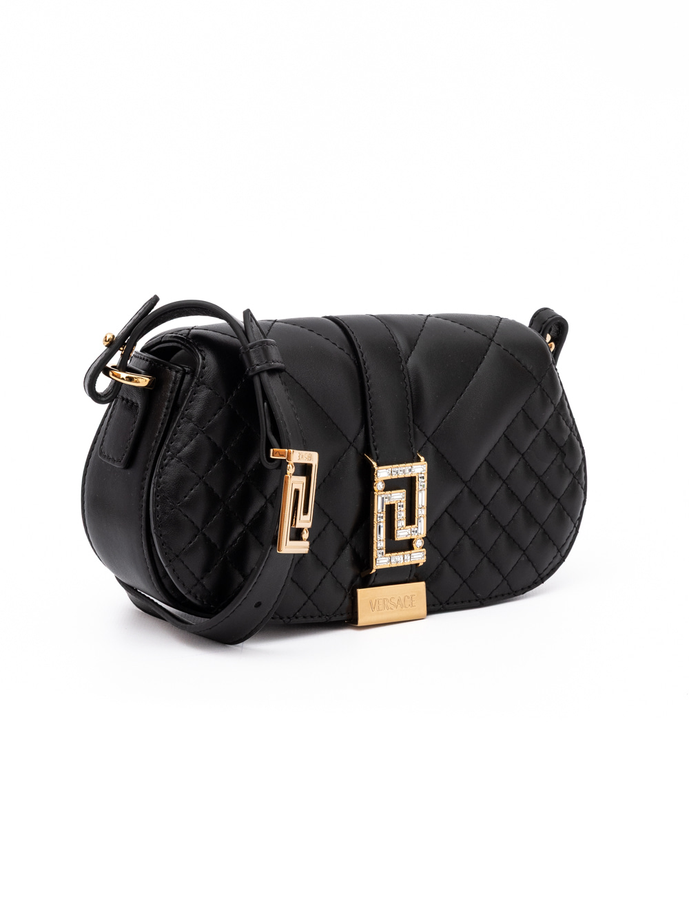 Versace Black Leather Quilted Shoulder Strap Bag