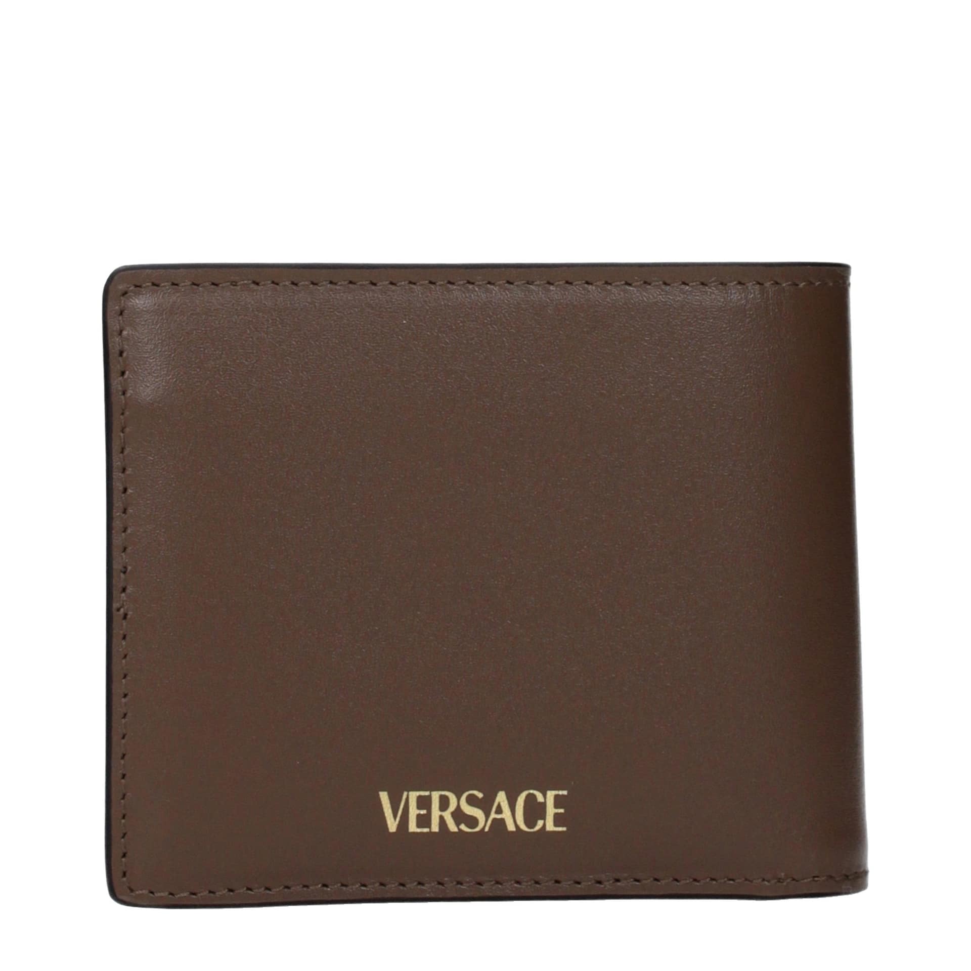 The product with MPN 10061171A021501ND4V and code F85821 leather in brown is a wallets designed by Versace. It has features like back logo.