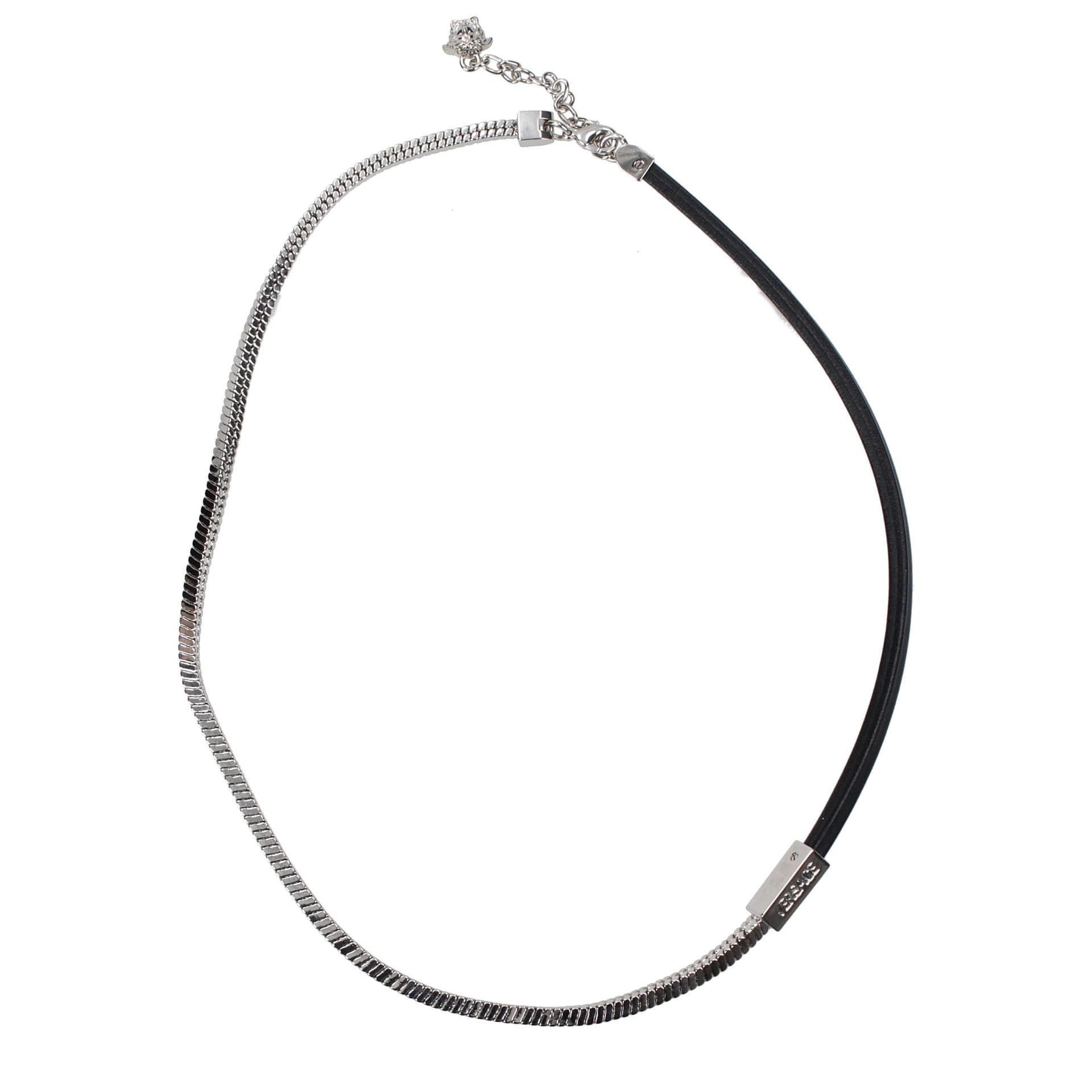The product with MPN 10160451A006374J750 and code F86260 metal in silver is a necklaces designed by Versace. It has features like logo, back detail, vintage effect.