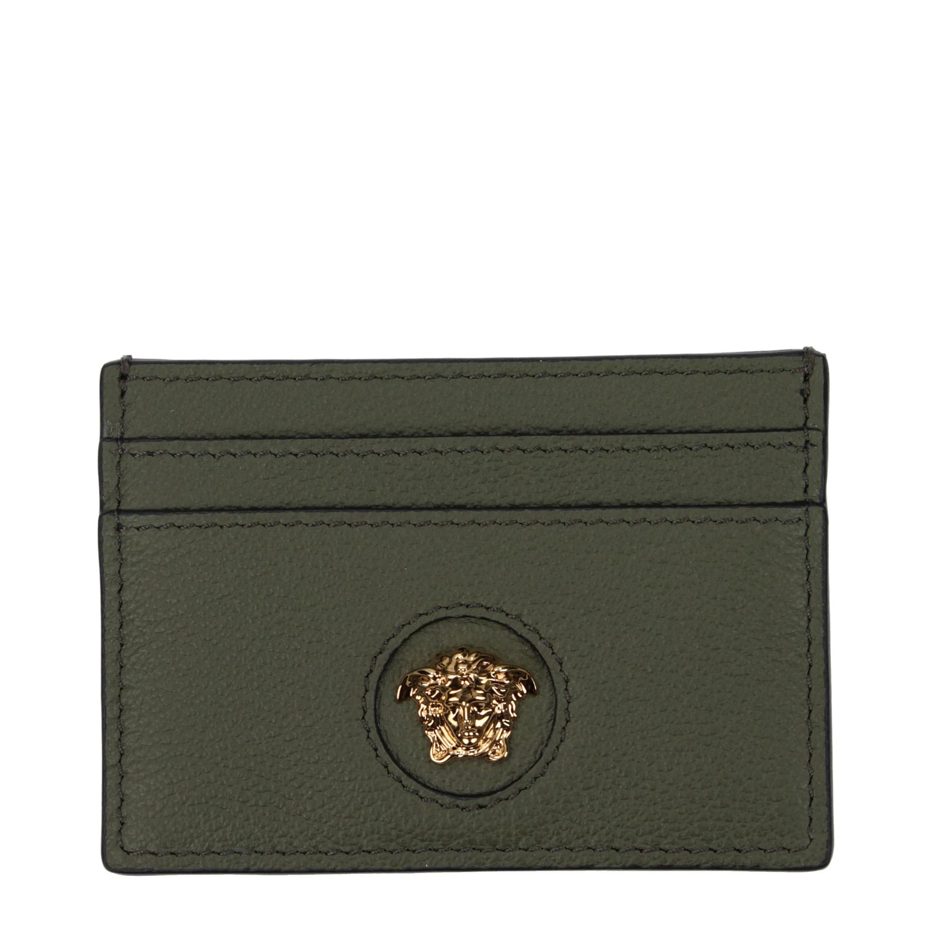 The product with MPN 1008105DVIT2T1GM1V and code F83546 leather in green is a document holders designed by Versace. It has features like front detail, back logo.