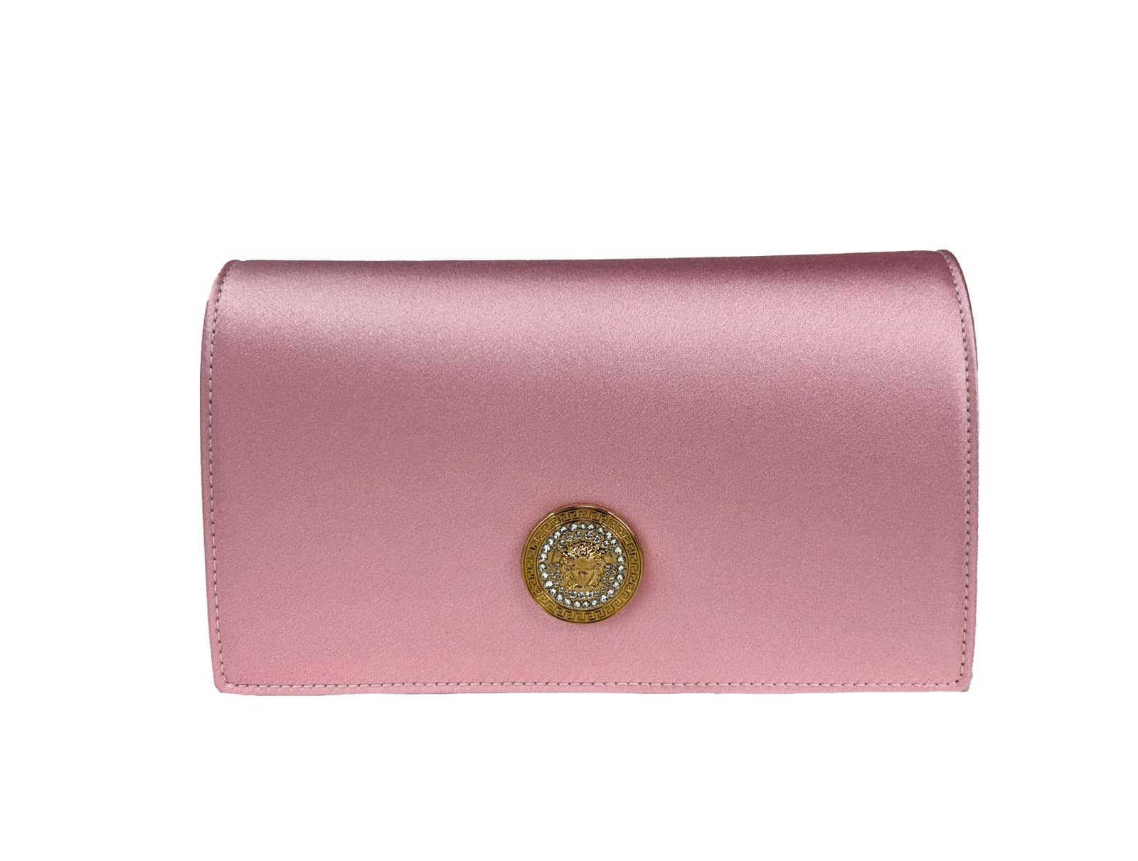 Elevate your accessory game with the exquisite Versace Medusa Crystal Satin Mini Chain Crossbody Bag Purse. This captivating piece is designed for the modern woman who appreciates luxury and sophistication. Crafted from high-quality satin, the bag features a stunning pink exterior that complements a variety of outfits for any occasion, whether it’s a formal event, a casual outing, or a night out on the town.