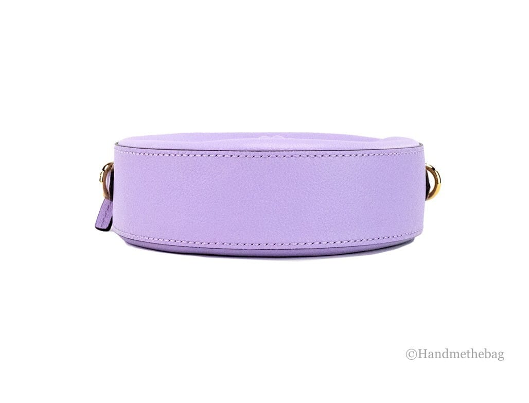 Elevate your accessory game with the Versace Round Disco Lilac Pebbled Leather Camera Case Crossbody Bag Purse. Crafted from luxurious pebbled leather, this exquisite bag combines functionality with high-fashion elegance. Designed for the modern woman, it features a striking round silhouette in a soft lilac color that adds a touch of femininity and sophistication to any outfit.